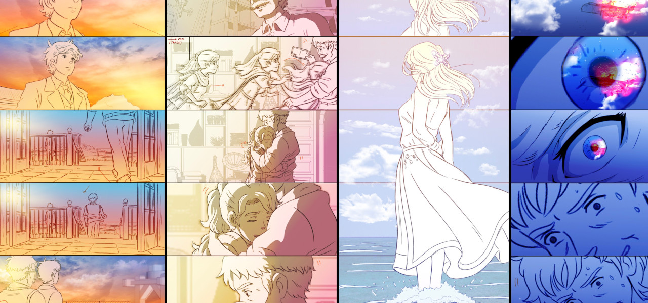 Usman Riaz: Tôi tự mình vẽ tất cả các bảng phân cảnh cho bộ phim… Tôi phải vẽ các bảng phân cảnh chi tiết hơn bình thường vì tôi không muốn bỏ sót bất cứ điều gì. Đây là một vài cảnh mở đầu của bộ phim, nơi chúng tôi thiết lập tâm trạng, tông điệu, thế giới. Quá trình vẽ bảng phân cảnh là điều thú vị nhất đối với tôi trong toàn bộ quá trình sản xuất này. Tôi cũng là một nhà soạn nhạc, một nhạc sĩ, và quá trình hoạt hình, đặc biệt là với biểu đồ thời gian và bảng phân cảnh, đã gợi cho tôi nhớ đến bản nhạc. Nó gợi cho tôi nhớ đến Mozart. Chắc chắn, khi Miyazaki ngồi và vẽ một bảng phân cảnh, giống như đang xem Mozart sáng tác tất cả những bản nhạc tuyệt vời của ông trong bộ phim Amadeus . Về mặt âm nhạc, khi bạn viết bản nhạc cho một bản nhạc giao hưởng, thì theo chiều ngang để theo giai điệu, nhưng cũng theo chiều dọc về tất cả các hợp âm và những thứ đang diễn ra với các nhạc cụ khác để hỗ trợ giai điệu chính đó. Quá trình vẽ bảng phân cảnh thực sự gợi cho tôi nhớ đến điều đó… nhịp độ, khoảng cách và dòng chảy. Giống như khi bạn làm hoạt hình cho một cảnh quay, tôi xử lý bảng phân cảnh cũng giống như vậy, giống như một bản nhạc.